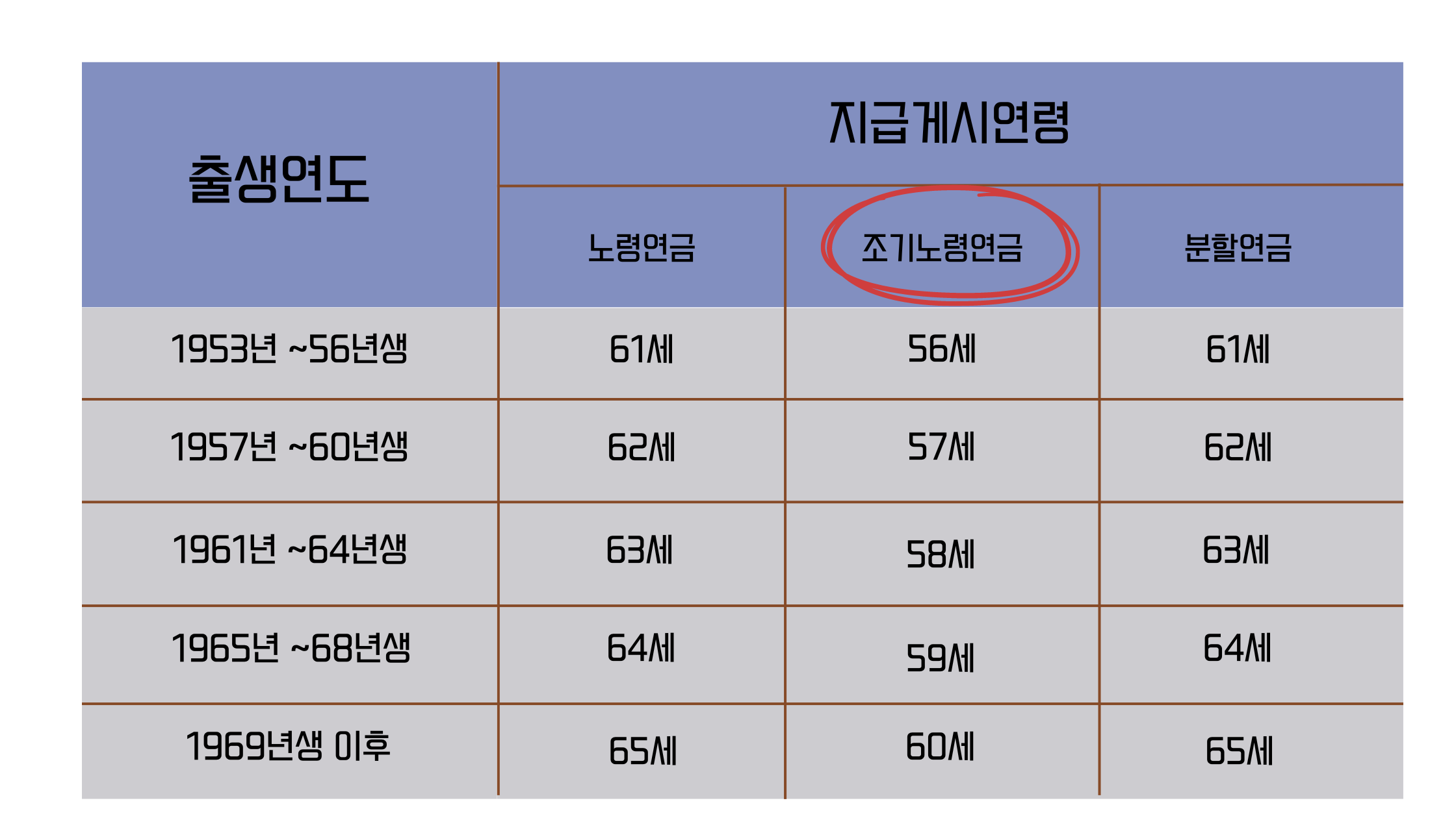 3. 1961년생부터 64년생이면 노령은 63세, 조기노령은 58세