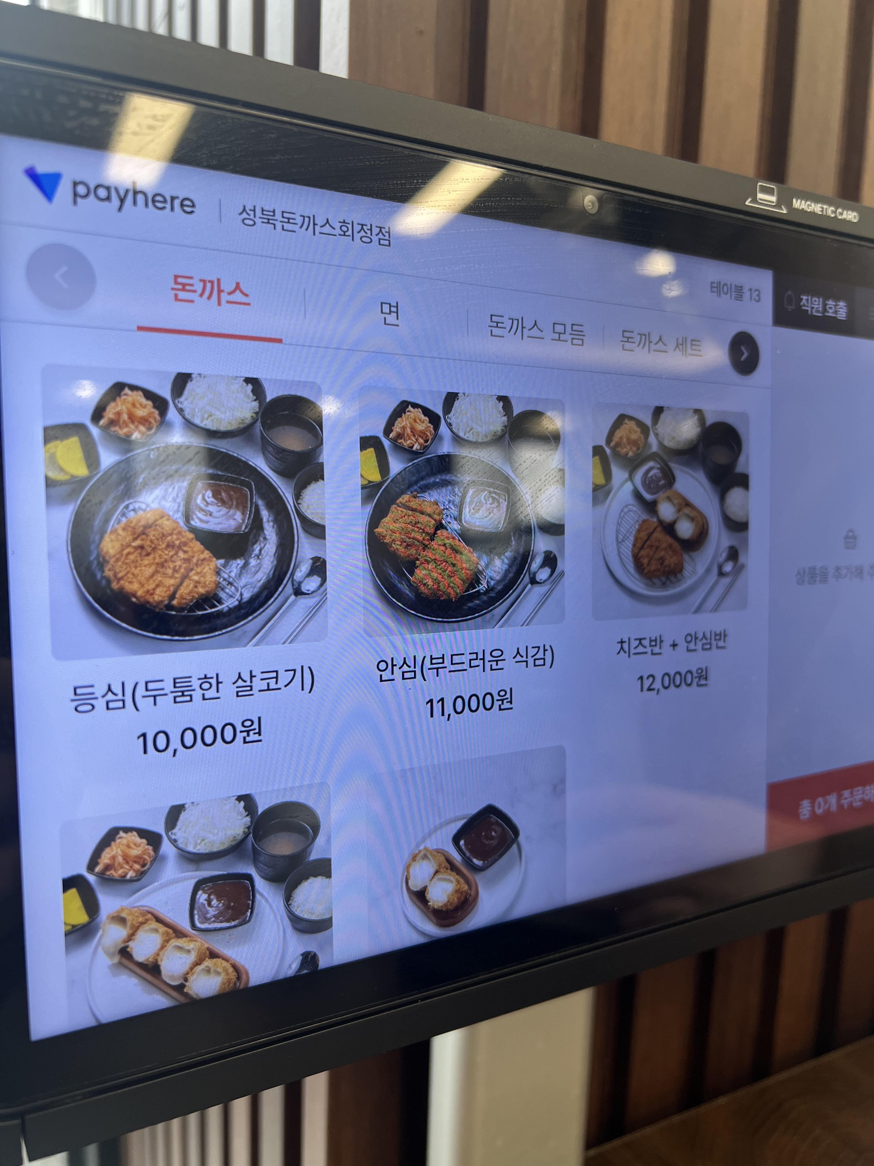 메뉴판은 따로 없고 이렇게 기기로 주문하고 먼저 결제하는 시스템으로 되어 있습니다.