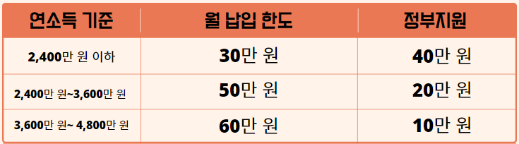 연 소득 4,800만 원을 초과할 경우 정부지원금이 나오지 않고 비과세 및 소득공제 혜택이 주어집니다.